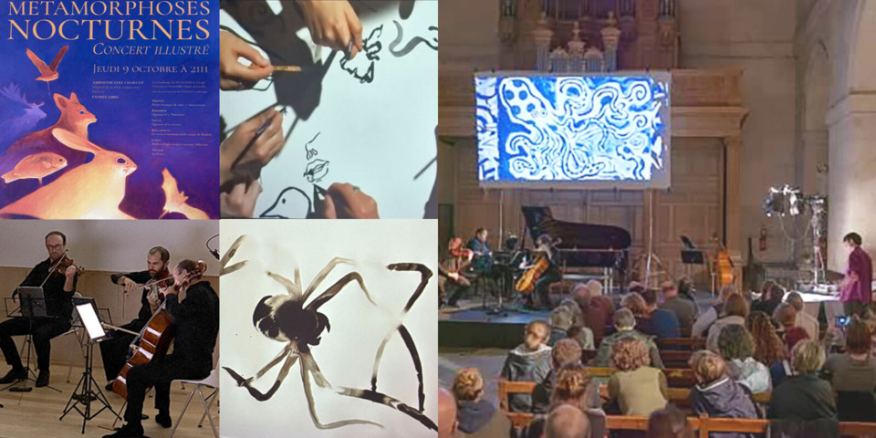 Original Drawn Concert — "Les Métamorphoses Nocturnes": One of the most unforgettable artistic moments was the "Concert Dessiné" (Drawn Concert), a unique performance held on the evening of October 9th. Titled "The Nocturnal Metamorphoses," it involved students from the DSAA ISM and DNmade Numérique programs at École Estienne. Held at the Jean-Martin Charcot Amphitheater of the Pitié-Salpêtrière Hospital, this original idea by Prof. Fleur Cohen-Aubart, directed by Patrick Pleutin and Olivier Moulin, was a true highlight that fused science and expressive art. You can relive this superb moment in the captured video available here: https://pleutin.fr/html_251009_Salpetriere/251009_Salpetriere_1.html